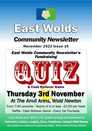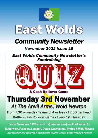 From here you can download and read the older issues of the East Wolds Community Newsletter. Issues from as far back as 2021 can be downloaded and viewed as a PDF file. If you have any problems with downloading, please let me know using the contact form or direct email.