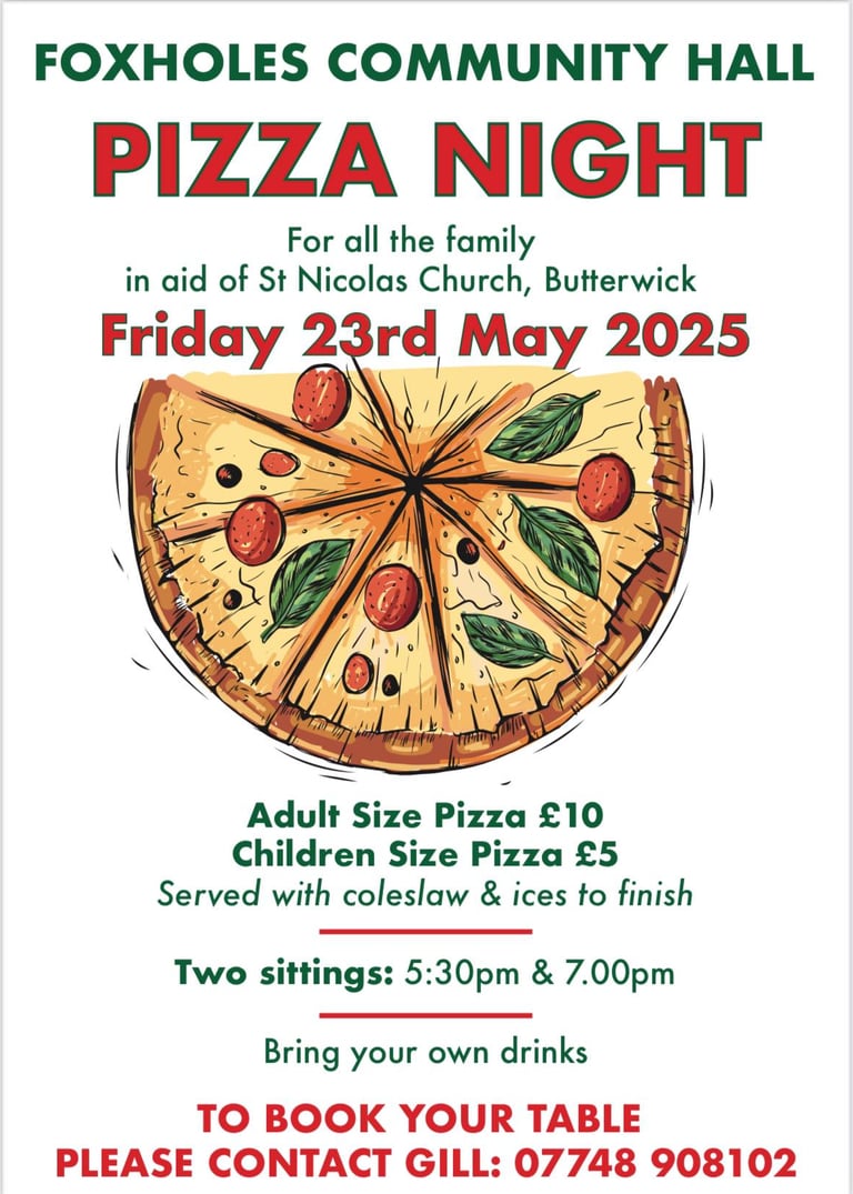 Friday 23rd May - Pizza Night at Foxholes Community Hall